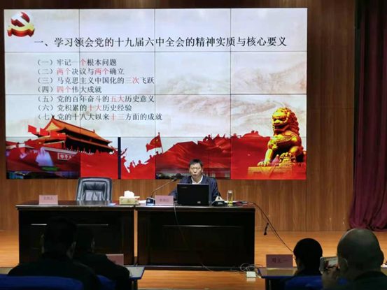 在报告中,李清臣分析解读了党的十九届六中全会的精神实质与核心要义,一是牢记一个根本问题;二是两个决议与两个确立;三是马克思主义中国化的三次飞跃;四是四个伟大成就;五是党的百年奋斗的五大历史意义;六是党积累的十大历史经验;七是党的十八大以来十三方面的成就。