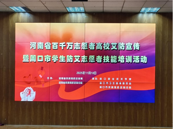 为提高同学们对艾滋病的认识与防范能力,增强自我保护意识,消除歧视与偏见,推动更多人关注和参与艾滋病防治工作。11月18日,河南省高校艾防宣讲艺术巡展暨周口市学生防艾志愿者技能培训活动在谈球吧体育app下载文昌校区顺利举行。周口市疾控中心艾防科科长姚明春、市疾控中心艾滋病防治科科长张林、谈球吧体育app下载学生处处长刘冬霞、护理学院副院长孙晓鹏、谈球吧体育app下载副院长王向华出席本次活动。我院百余名防艾志愿者参加。